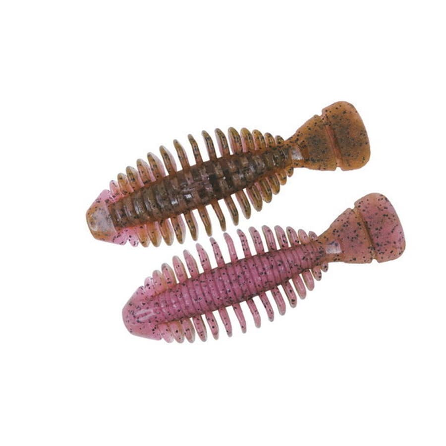 動きはナチュラル、水押しはパワフル!【T208 ライトグリパンピンク】グリパンチャートと同系のジミ&ハデながら、透明感を残したピンクペッパーと合わせることでグリパンと透け馴染み、ハデさを抑えた色合いに。ササ濁り程度、ヘビーカバー内やオープンウォーターでの発見率向上など、バスの目を惹きたくもハデにしすぎたくない状況にハマります。