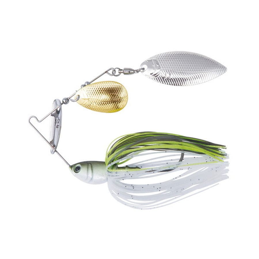 ■スカートを躍動させる『スプリッター』搭載。スプリッター(PAT)が振動し、「ヨコ揺れ」を発生。小魚が身をクネらせて泳ぐかのごとくスカートを躍動させるとともに、使い手に心地よい引き感をもたらします。また、一目で重さが判別できるようウエイト表記をプリントしています。■リアリティ・スリ抜け・安定性を兼ね備えるヘッド形状。見た目のリアリティに配慮しつつ、実用性を優先したシェイプ。アームから段差なく滑らかに繋がる先尖り形状はスリ抜け良好。断面形状は、涙型にすることで低重心化し、高速リトリーブでの安定性UPに貢献します。