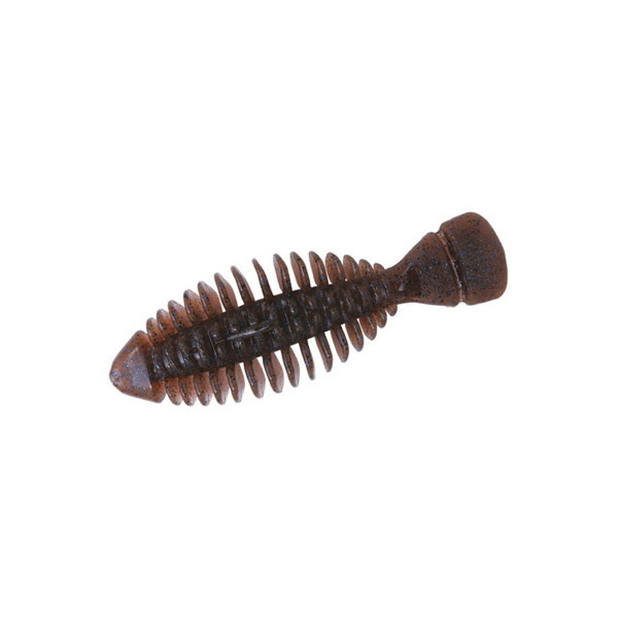 リブの一枚一枚がしっかり水を掴むために導き出した、最適な間隔と形状。フォール中はボディサイドを細かく震わせ、強めに引くと瞬間的にしぼんで形状変化するニューアクションを実現し ました。繊細なアクションと強い水押しの両立、そして移動距離を抑えた誘いを適えます。横扁平ボディかつ背腹ともスリットを入れることで、まるでポークのように柔らかな波打ちを実現。バイト時にはフレキシブルに曲がることでスッポ抜けを防ぎ、高いフッキング率を誇ります。スリットで水を受けバイブレーションするオリジナルテール。尾びれの動きをイミテートしつつ水中に波動を発し、バスからの発見率を高めます。 そしてロッドワークではしなやかに上下動。厚みのあるウチワ状の面が水やボトムを叩き、強い水押しでのアピールも可能にします。エビ・イカ・ベイトフィッシュの粉末をトリプル配合。柔らかな動きと針持ちの良さのバランスを突いた素材硬度に、塩量はナチュラルな姿勢と水押しを適える中比重に設定しました。