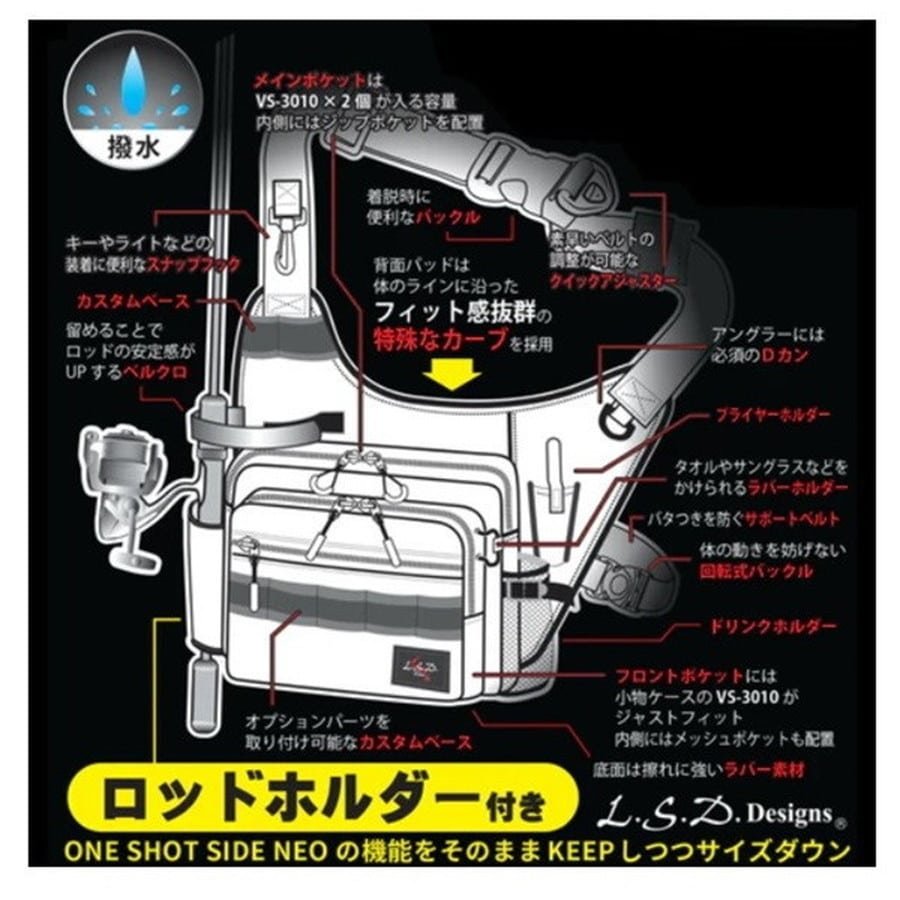 ライトゲームから管理釣り場まで様々なオカッパリに対応する多機能ショルダー。機動性を高めたミドルサイズで、ロッドホルダーやドリンクホルダーを装備。