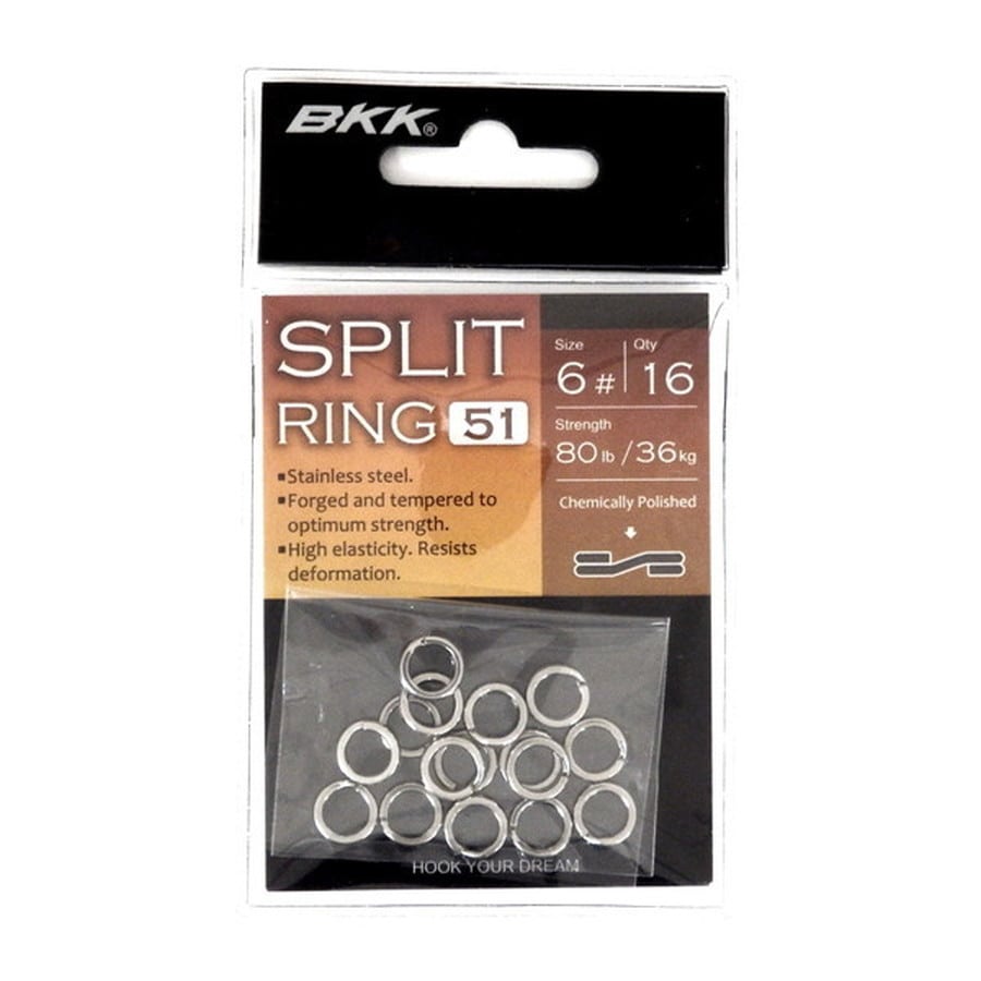 BKKスプリットリング-51は、小型から大型ターゲットまでをも想定した最も基本的なSplitRingです。エッジに精密化学研磨を施し、ラインへのダメージを軽減させています。