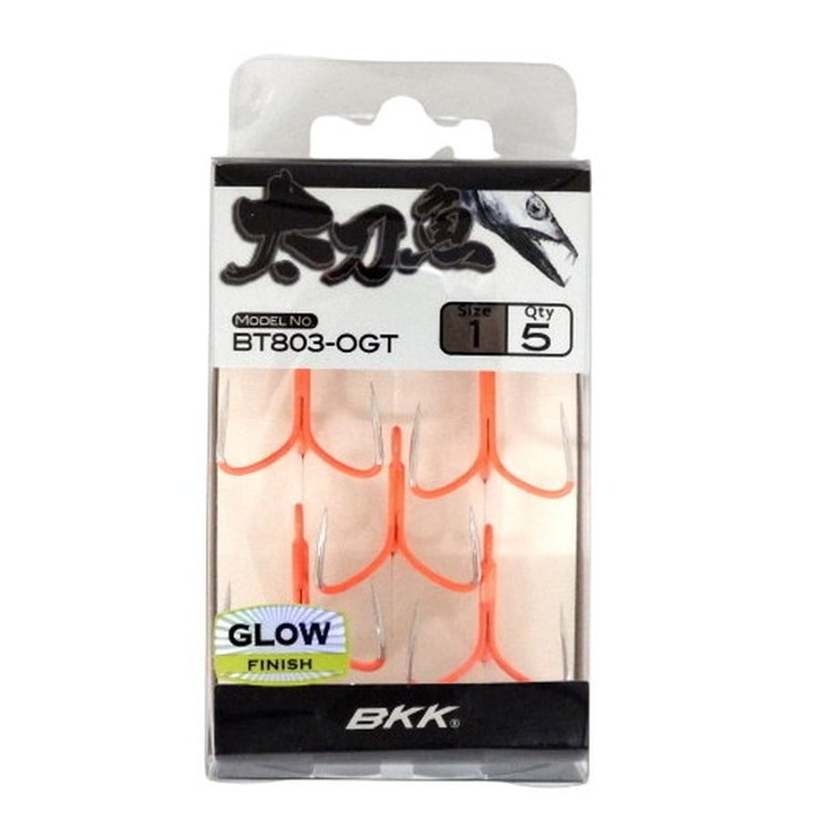 針本体へ加工されたオレンジグローがバイトマーカー的な役割も果たし、鋭い歯でのラインブレイクも軽減出来る優れもの。ストレートポイントで掛かりは抜群で、独自のハーフカットの針先は硬い顎(アゴ)も貫いてくれます。4本針ではなく3本のトレブルフックの為にメタルジグと非常に相性も良く、フックの自由度が増して太刀魚を確実にヒットに持ち込めます。