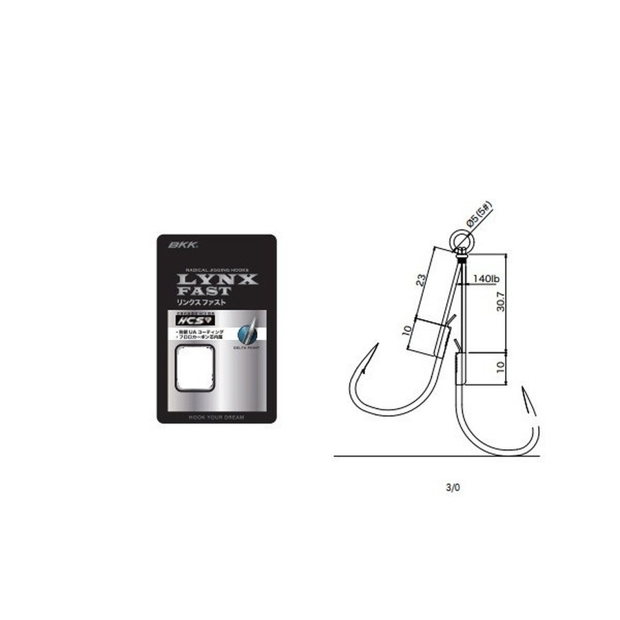 触れたら即掛け !! 抜群の初期掛かりをパワーロスなく貫通!近海青物をベースに開発した先鋭速攻デザインのジギングフック!・近海青物をベースに開発した先鋭速攻デザインのジギングフック。・触れれば即掛け、一瞬のコンタクトを逃さない LONG TAPER & DELTA POINT!・次世代新素材 HCS を採用、更に BKK 独自の SPECIAL FORGING により圧倒的な強度とファイト時のキープ力を実現。・BKK のテクノロジーを集約した JAPAN STANDARD FASTHOOK が誕生しました。・HCS の効果により、フッキング時にパワーロスなく真っ直ぐ深く貫通します。