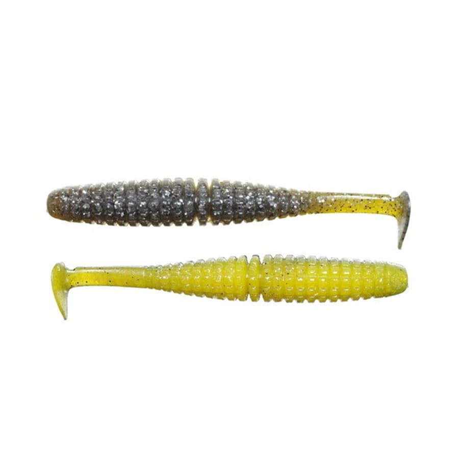 ハイピッチ&パワーウォブリングベイト。3.5in:各地で絶対的釣果を生み出している 「キャラメルシャッド5in」 のダウンサイジングモデル。テールアクションをボディサイズに適正化し、バスが思わず口にしてしまうハイピッチアクションが特徴です。5inと同じくテールアクションによる振動をボディに戻し、ボディ全体でウォブリングします。ネイルリグ、ジグヘッドリグ、ラバージグ等で実績があります。