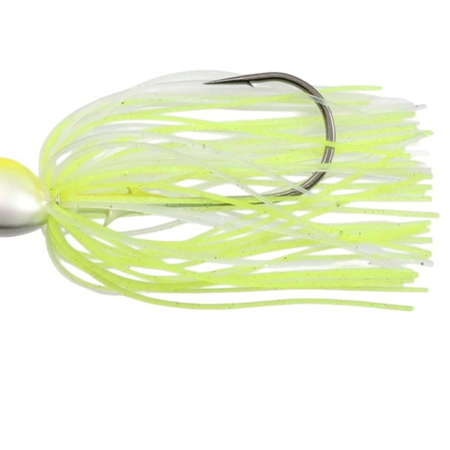 チャターベイトの強みは、強波動、強振動による 「魚を呼ぶパワー」AKチャターは 「魚を呼ぶパワー」 をより高めるべく、オリジナル極薄ロングブレードを搭載。効率よく水を掴むことで、ファストからスローリトリーブまで様々な速度域で釣れる振動をキープします。さらに、ブレードのポテンシャルを最大限に引き出すため、ヘッドとアイのバランスを最適化。ボディ全体をハイピッチに揺らすタイト千鳥アクションが魚を呼び、バイトに持ち込みます。安定感の高いヘッドはボトムでの転がりを減らし、着底時の根掛かりを回避。ウェイトに対して浮き上がりが良いため、ワンランク軽いチャターベイトと同じレンジをトレース可能です。ブレード保持機構には、ビス打ち式(PAT.P)を採用。従来のワイヤー曲げ込み式と比較し、アイ形状の精度向上が可能となったことで、AKチャター本来のポテンシャルを引き出すことに成功しました。