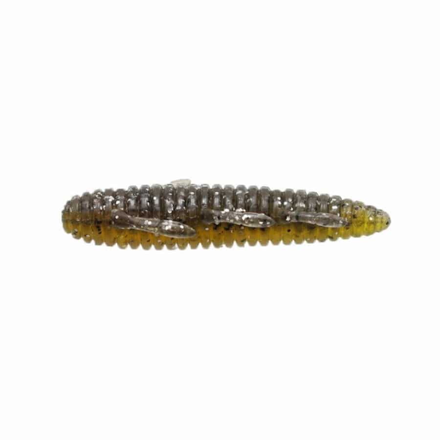沈み蟲 1.8in、入数 : 8、価格(税別) : \720、推奨フック : マルチオフセット#2★シンプルかつ、爆発力のあるのワームです。高比重マテリアル、流線型ボディにより驚異的飛距離が得られます。ボディの細い方からオフセットフックをセットして下さい。ノーシンカーでは脚をピリピリ動かしながら水平気味にフォールします。ボディの太い方にネイルシンカーを装着すると、バックスライドセッティングとなります。