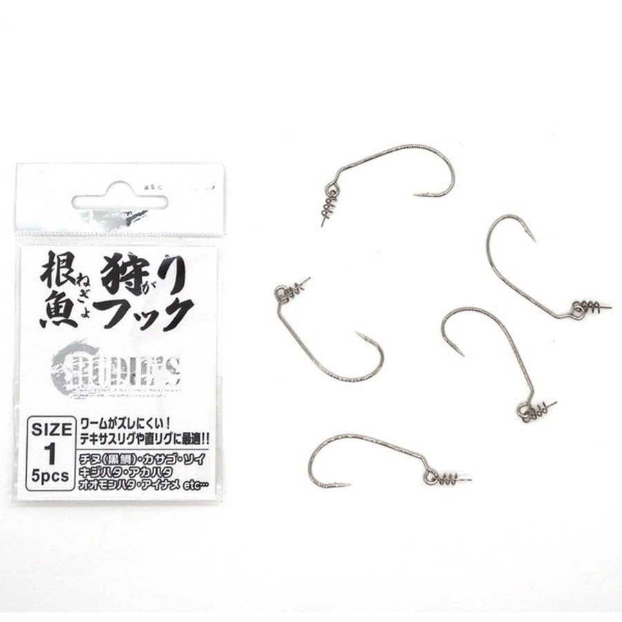 根魚のパワフルなパワーに負けない「平打ち加工」で強靭な強度を実現! フックポイントとアイラインが並行なので安定したスイムを可能とし、ハタゲームのネックである根掛かりも大幅軽減。 「大口径アイ」・「ワームキーパー」も実装し、まさに本気で根魚を獲りにいくアイテムである。