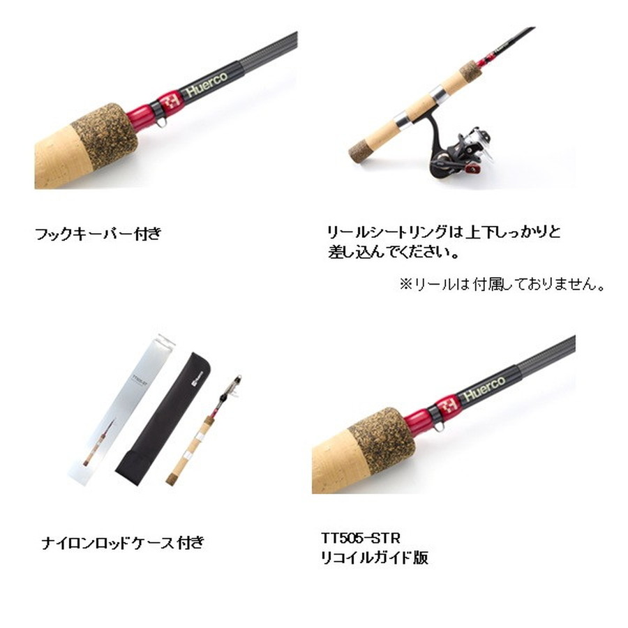 オールドファッションともいえる風合いのリングリールシートと、シンプルなガイドリングを組み合わせて現代のロッドデザインに落とし込み、80~90年代風のテレスコピック・ルアーロッドを再現。近年の主流である軽量・高感度では決してないが、昔風のブランクスに機能はしっかり汎用性をもたせ、さまざまな旅先の釣りに使用できます。そして道具自体の雰囲気もふくめて楽しんでいただきたい…という願いで作り上げた1本、それがTT505-STです。