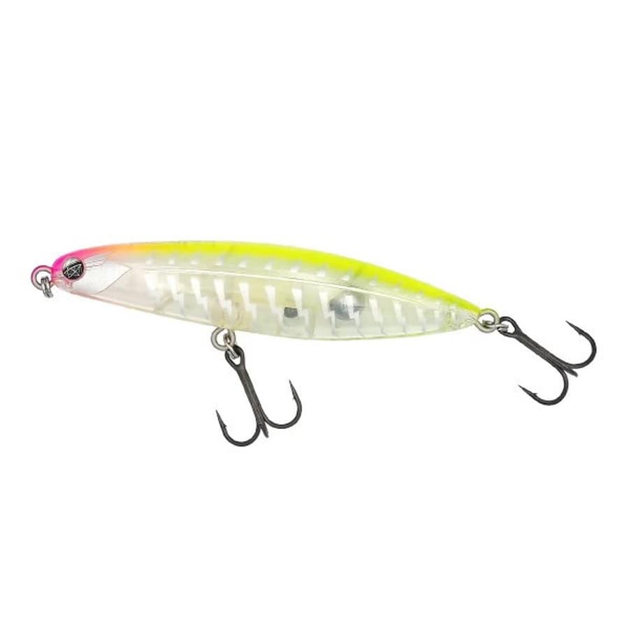 TYGANの持つ最大の能力として最も重要視したのが『圧倒的飛距離』です。本体の形状は先頭、後尾ともに滑らかな曲線かつ尖った形状で空気抵抗を最大限軽減し、後方のウェイトルーム設計は着水姿勢やアクションとのバランスを保ちながら可能な限り後方重心に設定しました。ボディ側面は前方部がフラット形状、後方部はラウンド形状となっておりアクション入力時、前方部のフラット面で水面を叩くことによってスプラッシュとポップ音が混ざった絶妙な音を奏でます。また本体のお腹部分のフラット形状でダート幅の抑制もしておりこのショートターンと、ドーム状の泡、サウンドで強くアピールするTYGAN特有のアクションが実現可能となりました。このルアーはブラックバスはもちろん、淡水・海水問わず国内外のあらゆる魚種をターゲットとしています。そのためにも強靭な顎や歯を持つ魚にも耐えられるボディの強度と太軸のフックに変更しても耐えられるエイト環、セッティングを変更しても、アクションを保持できるようなバランスで設計し、多魚種対応を可能としました。