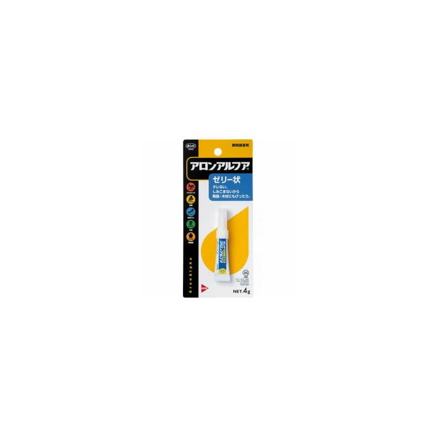 NET:4g(ブリスターパック)★用途:硬質プラスチック・ゴム・陶磁器・金属・木などの接着。 特長:ゼリー状、タレない、しみ込まない。用途広い。瞬間接着剤。 ※掲載している商品の画像は代表画像を表示しています。また実物と色が違って見える場合があります。あらかじめご了承下さい。