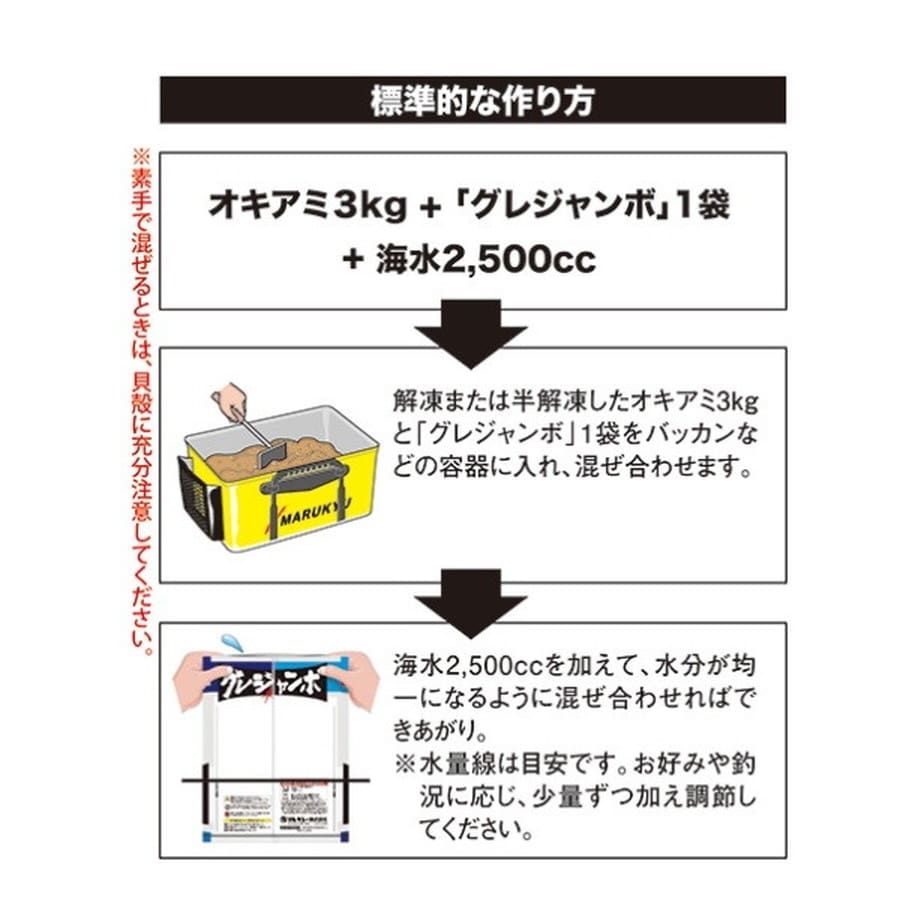 配合エサとパン粉がブレンド済みですぐに使える。配合エサとパン粉がブレンドされているオールインモデル。オキアミと海水を混ぜるだけですぐに使えます。大粒のパン粉が水面下をゆっくり漂いながら沈下。また、カキガラやムギが下層まで届くとともに、「キララ」が視覚を刺激して魚をグイグイ浮かせます。たっぷり使える3kg入り。★内容量:3000g