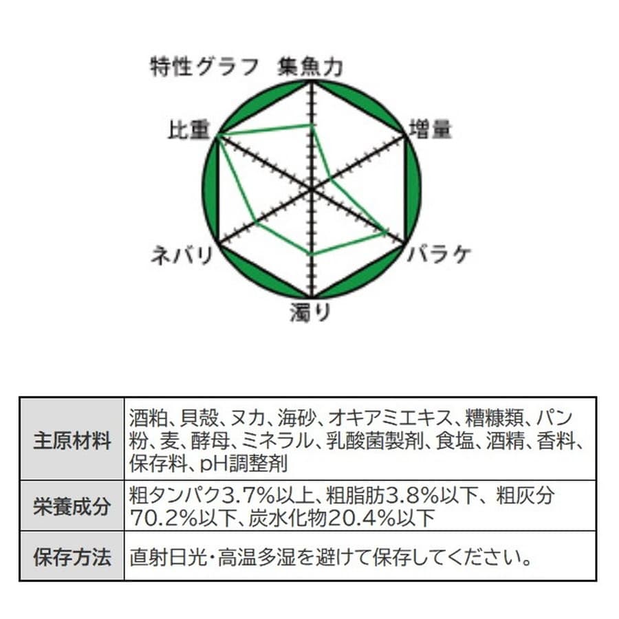 かかり(筏・カセ)釣り用ダンゴのベースエサ。簡単! 便利! すぐ握れる! ダンゴエサ。誰でも簡単にダンゴエサが作れる、かかり(筏・カセ)釣り用配合エサ。「水分調整が難しい。」「うまく握れない。」「付けエサの抜け調整が難しい。」など、かかり(筏・カセ)釣り初級、中級者の悩ましい経験を、「ウエットダンゴチヌ」がフルカバー。お好みの付けエサを入れてダンゴを握れば、すぐに釣りが始められる海水不要なウエットタイプ。また、海底まで届く重量級な重さ(水深30mまで対応)も装備。握り回数、握り加減によって付けエサがスコンっと抜けるノンストレスなダンゴエサに仕上がります。対象魚はクロダイ・チヌ、マダイ、アジ、カワハギ、カサゴなど。ダンゴエサが簡単に使用できる超オススメ便利アイテムです。