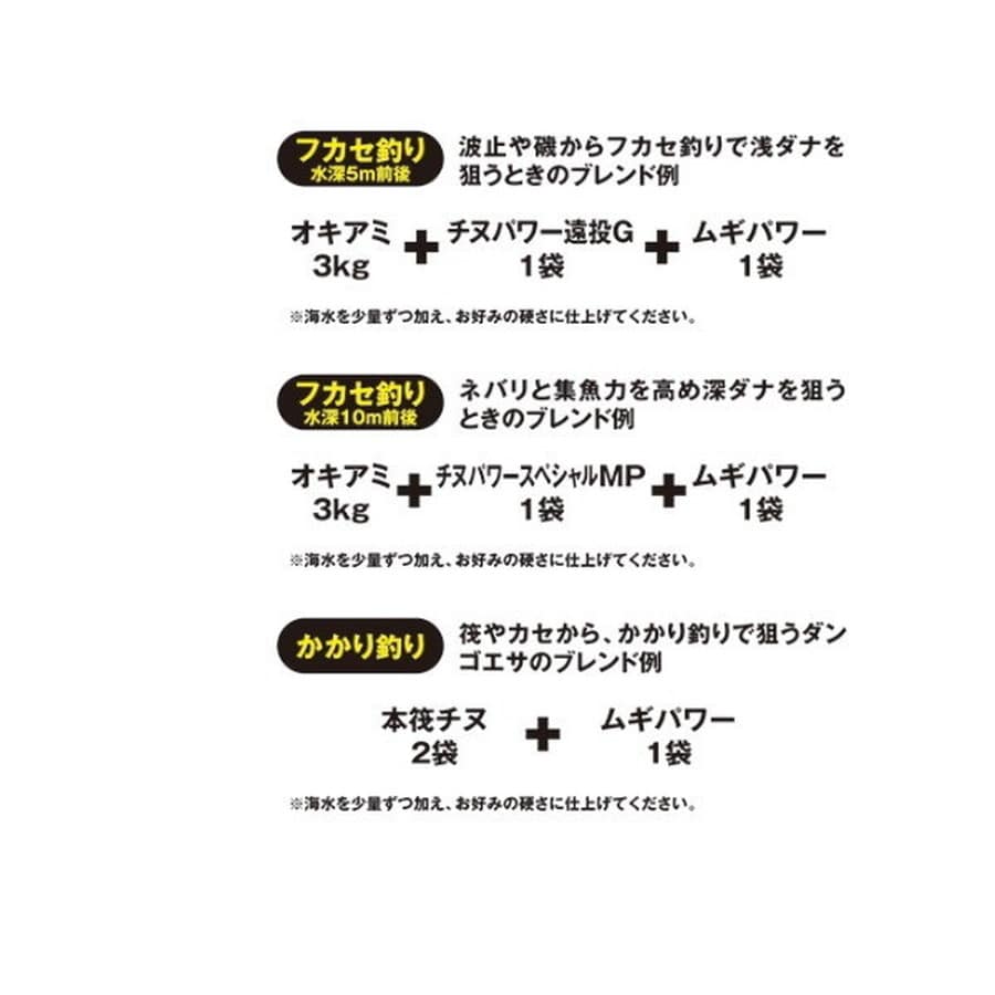 「発酵ムギ」がチヌの食い気をさらに高める。発酵させたムギを配合! 集魚力が長時間、持続する配合エサです。他の配合エサとも相性がよく、ブレンドすれば一層集魚効果が高まります。★内容量:2400g