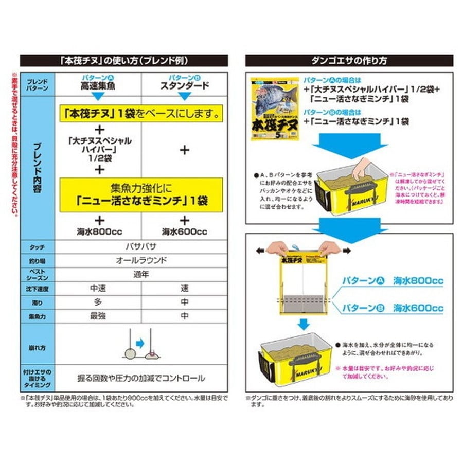 握り加減で割れるタイミングを自在にコントロール。ブレンド性抜群のベース専用エサ。エサ取りの活性や水深、潮流など釣況に応じて着底後の崩れ(割れ)具合を、握り加減で自由自在にコントロールできる本格派。10秒間に約6.5mというスピード沈下で、時合を逃さず素早い手返しが可能です。★内容量:5000g