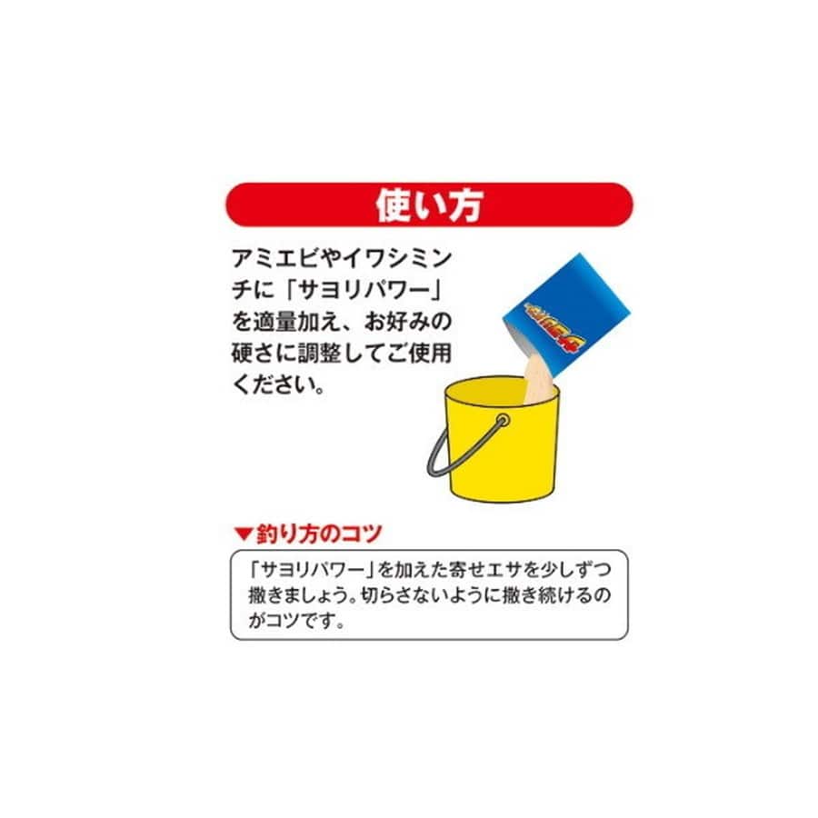 アミエビやイワシミンチに混ぜるだけ。群れを足止め。配合された軽い素材が、水面直下で拡散。白い煙幕状に漂います。回遊するサヨリをポイントに寄せ、足止めするのに効果的。アミエビやイワシミンチに混ぜるだけOK。ドリップを無駄なく吸収し、カゴに詰めるのも楽になります。★内容量:380g