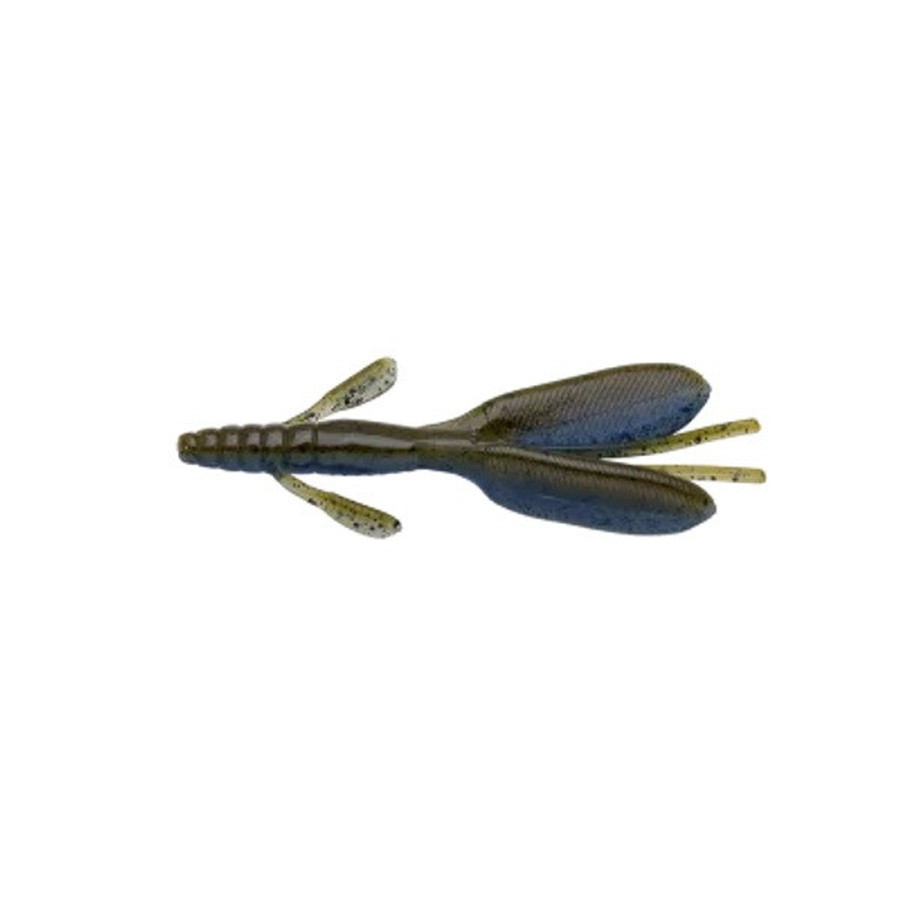 リアクションバイトを誘発するメリハリの効いた動きと、ビッグフィッシュに効くボリューム感はオリジナルから継承しています。ダウンサイジングといえども、厚さをもたせた独特な形状のツインパドルと2対の逆付けレッグが大きく水を動かし、存在感を強烈にアピールします。シルエットは小さめのザリガニにあわせた食わせサイズながら、アピール不足を感じさせないボリューム感に仕上げています。アクション時にはツインパドルを上下に振り、逆付けレッグがわずかな水流にも反応してパドル側へなびきます。そしてステイさせた瞬間、パドルがつんのめるように振動し、レッグがモゾモゾと元に戻るようにアクションします。見ていただけのバスも思わずバイトしてしまう動きで誘います。高比重素材+塩の重量感で、ピッチングやフリッピングにおける操作性も抜群な上に”味と匂い”の粒子でショートバイト対策も万全です。使い方は杭やブッシュなどのカバーへの直撃テキサスリグ。ブレイクやハンプ狙いのキャロライナ。ビッグフィッシュ狙いのラバージグトレーラーとしてもベストマッチ。