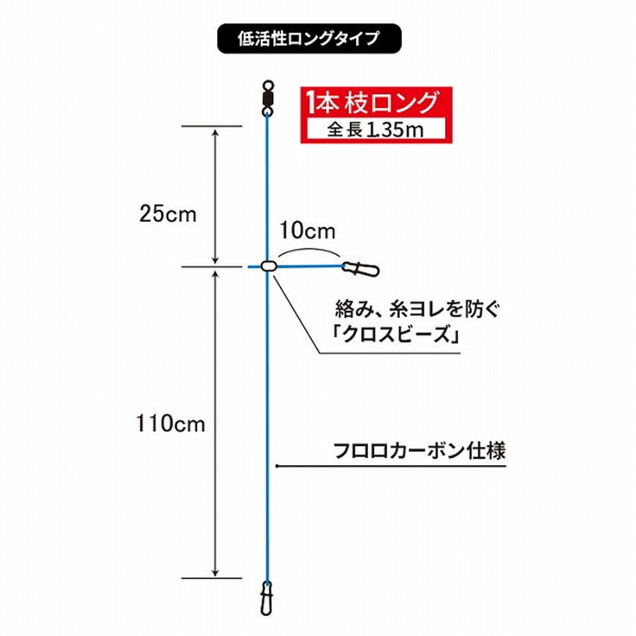 サイズ:3号 交換が簡単なスナップ付き 1本枝ロング、全長1.35m お祭り防ぐ「下向きカットライン」 絡まない「クロスビーズ」仕様 ティップランプラスにも対応