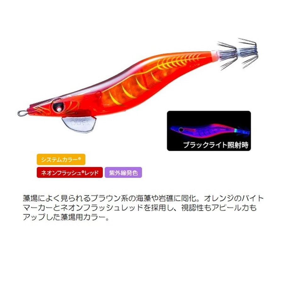 キレのいい「スライディングダート」は好奇心旺盛な秋イカに効果的!!今までにない急角度で左右に繰り出される「スライディングダート」によって、3Dレンズで倍増されたインナーシートの輝きを全方向へ拡散する事で広範囲のイカを引き寄せる!!★号数:3.0