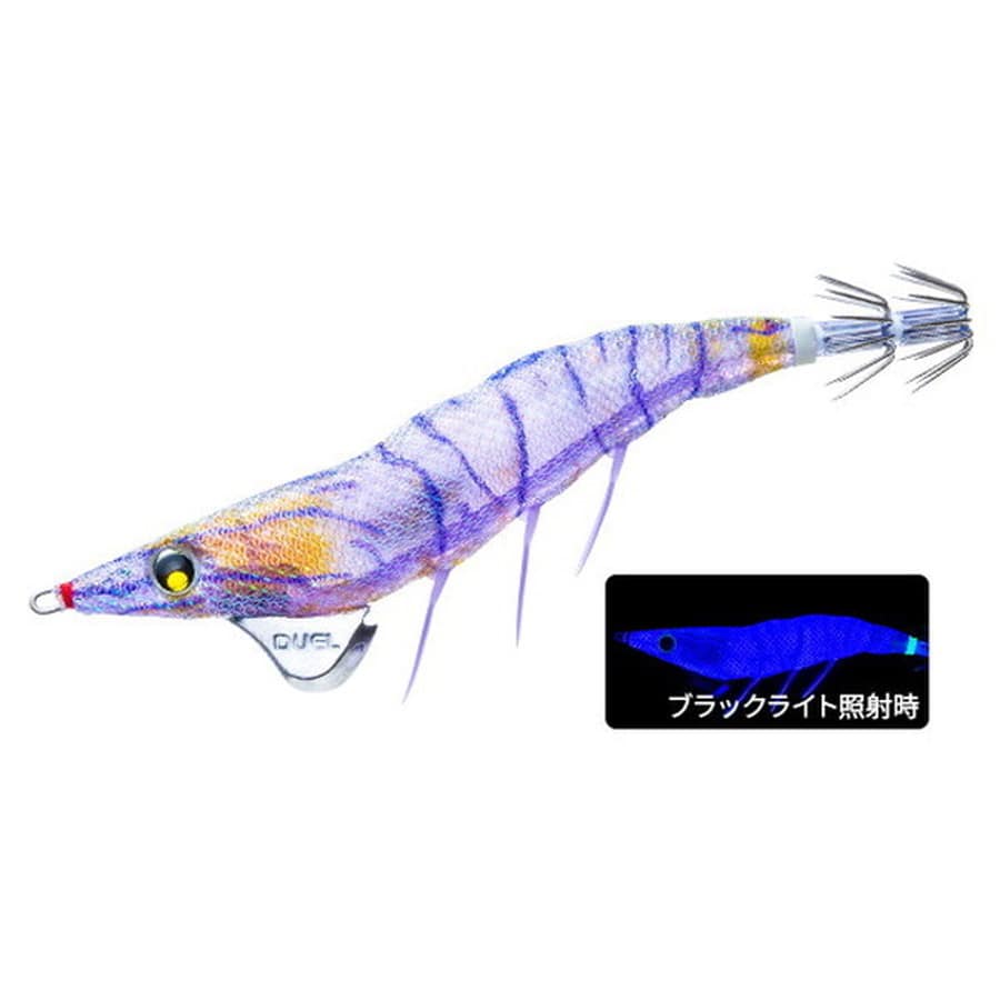 「イージーQダートマスター」に沈下スピード約8秒のSS“スローシンキング”タイプ新登場!!パタパタ×ダートアクション×スローシンキングアピールと喰わせの両立!ダートマスターのダート性能はそのままに、シンカーの重心を後方へ移動させることで沈下姿勢を調整、ボディ全体で水の抵抗を受けることにより約8秒/mという沈下スピードを実現。水噛みが良好なためスローシンキングでありながら水面を飛び出さずにしっかりダートアクション!【リアルイソスジエビ】ケイムラ発光をフルに活かしつつリアル&ナチュラルな模様でイカを誘う。時間帯や釣り場を選ばないためエギングそのものに必須といっても過言ではない、もはや殿堂入りと言えるカラー。