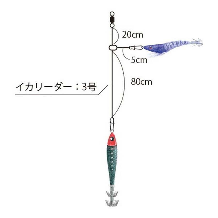 迷ったらコレ!誰でも簡単イカ釣りセット!付属のイカリーダーにつなぐだけのイージースタート!手返し重視、ショートロッドにも対応した全長1m仕掛け。