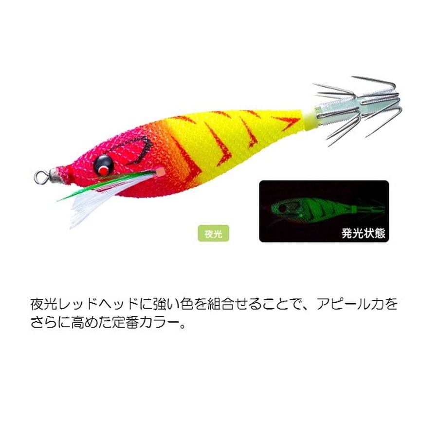 ボリュームのある魅惑のぷっくりボディ!イカの視覚へのアピールと、高浮力ボディから繰り出される波動のWアピール!●抜群の潮つかみで安定アクション。●デイゲーム~夜焚きまであらゆる状況に対応可能なカラー構成