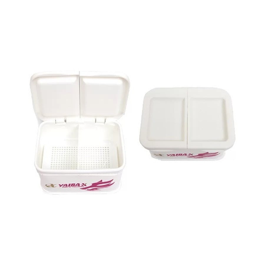 ●ヤイバウルフエサケースにピンクスペシャルが登場!●中にすのこ付きで上蓋は受け皿タイプ。●Y204(ダブル)は仕切り付きで上蓋は左右独立の受け皿タイプ。★外寸:サイズ:横150mm×幅110mm×高さ85mm