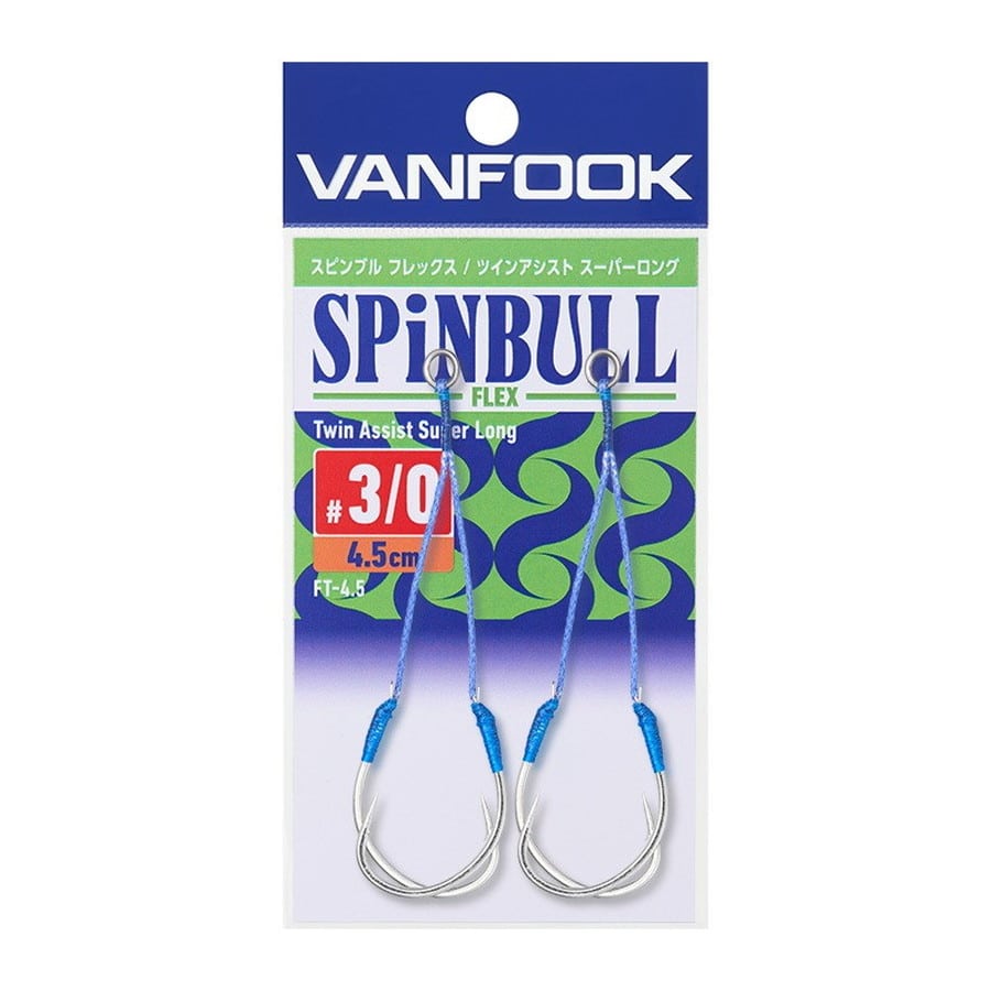中深海で狙うターゲット(アカムツ、クロムツ、キンメ、アラ、タラetc)にフォーカスした拘りスペック。リングとアシストライン、フックの結束部を極細PEラインでテンションをかけしっかりとタイイングすることで、水中での抵抗を極力減らし軽量化したプロ仕様モデルです。フックはフォールバイトも容易にフッキングさせるストレートポイント・ワイドゲイプ設計の「スピンブルフレックス(FL-08)」。柔軟性と張りを両立したフロロカーボン中芯入アシストライン「ジギングアシストライン・フロロコア(J-FC)」を採用することで、クセがつきにくくフック同士の絡みつきを抑え、快適な使用感を実現します。ヘビーウエイトなロングジグに適した4.5/5.5㎝の長さをラインナップ。