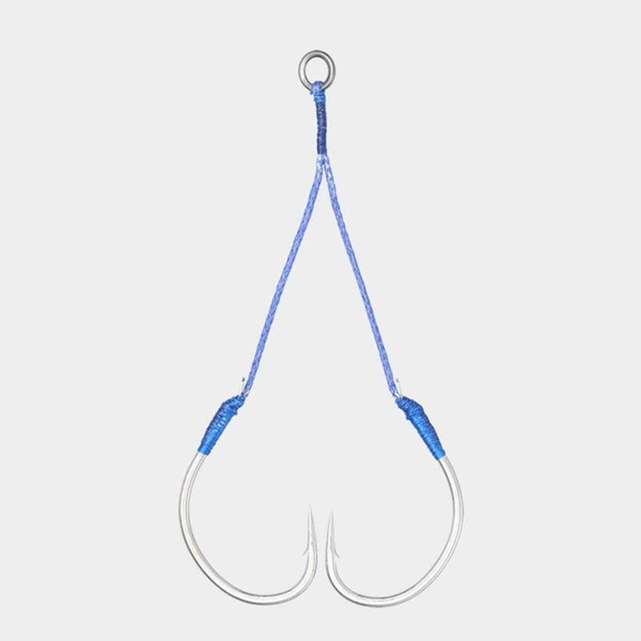 中深海で狙うターゲット(アカムツ、クロムツ、キンメ、アラ、タラetc)にフォーカスした拘りスペック。リングとアシストライン、フックの結束部を極細PEラインでテンションをかけしっかりとタイイングすることで、水中での抵抗を極力減らし軽量化したプロ仕様モデルです。フックはフォールバイトも容易にフッキングさせるストレートポイント・ワイドゲイプ設計の「スピンブルフレックス(FL-08)」。柔軟性と張りを両立したフロロカーボン中芯入アシストライン「ジギングアシストライン・フロロコア(J-FC)」を採用することで、クセがつきにくくフック同士の絡みつきを抑え、快適な使用感を実現します。ヘビーウエイトなロングジグに適した4.5/5.5cmの長さをラインナップ。