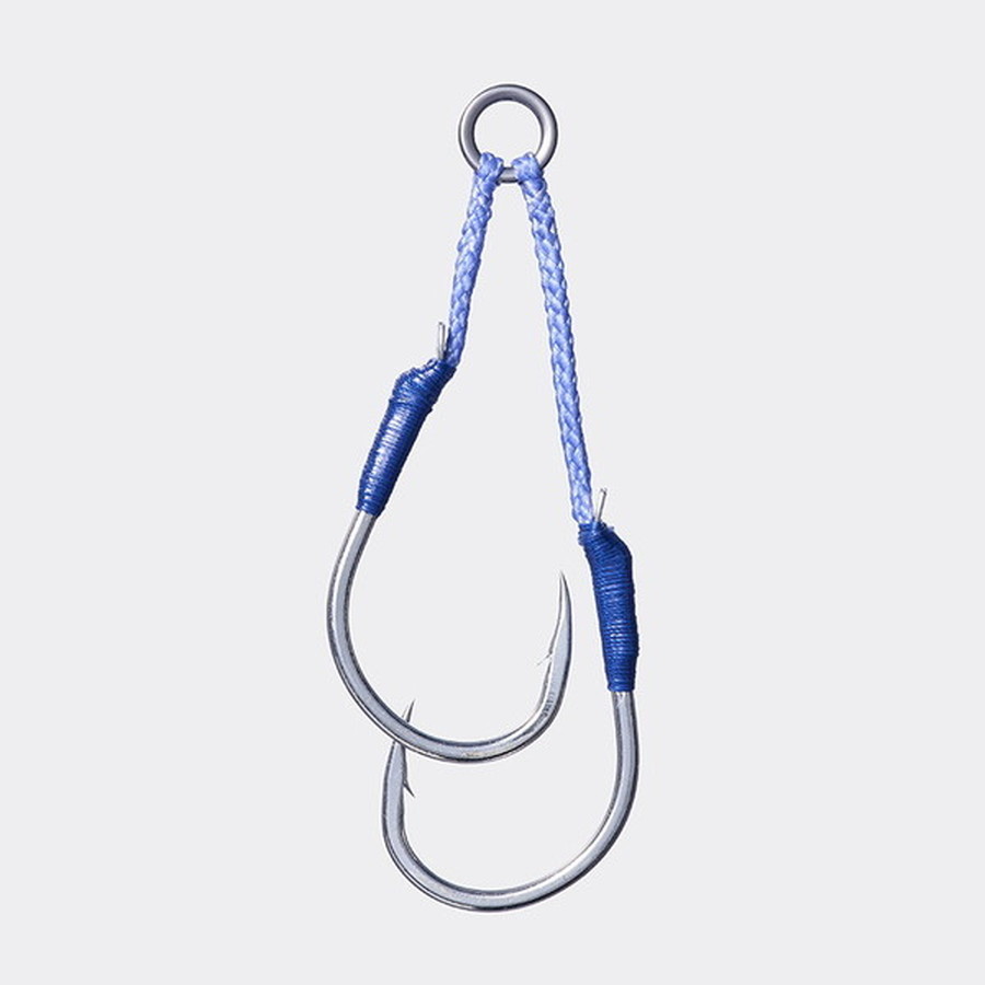 ショア・オフショアを問わず、小型青物はもちろん、根魚(カサゴ、ハタ類)、真鯛、イサキなどを狙うのに最適な段差タイプツインアシスト。ジグの動きを妨げずに魚がフックを吸い込みやすく、バイトチャンスを逃しにくくなります。特にショートバイトが多い小型魚に対して、フッキング率を高める効果が期待できます。フックは「JIGEN(JH-10)」を使用しています。超軽量で軽量なジグの動きを阻害しにくく、自然なアクションを演出できます。2本のフックそれぞれを個別にタイイングしているので、フックの向きを内向きor外向きどちらにでもセット可能です。強い衝撃にも耐えうる、高硬度コーティングで根巻部をしっかりと補強してあります。