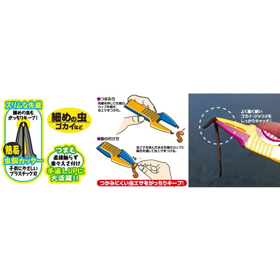★手を離しても虫餌が逃げない!逆作用式。細いゴカイやジャリメをしっかりキャッチ!・虫エサが苦手な方にオススメ ・スリム先端で細めの虫エサに最適 ・手を離しても虫エサをがっちりキープする逆作用式 ・簡易虫エサカッター付き※掲載している商品の画像は代表画像を表示しています。また実物と色が違って見える場合があります。あらかじめご了承下さい。