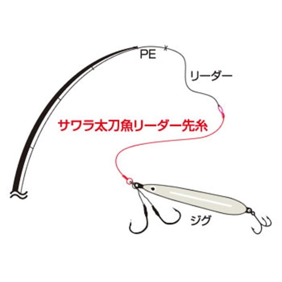 サワラ・太刀魚釣りで一番何点であった魚歯によるリーダーカット。これを最大限に防ぎ、かつ遜色なくバイトを誘発させるために、極太透明フロロカーボンにこだわりました。長さは魚へのプレッシャーとスロージャークのような多本バリをセットした場合にもトラブルなく仕様できる30cm長。もちろん初心者の方にも結びやすい強化チューブ。これで巻き込みによるガイド損傷も防いでくれます。