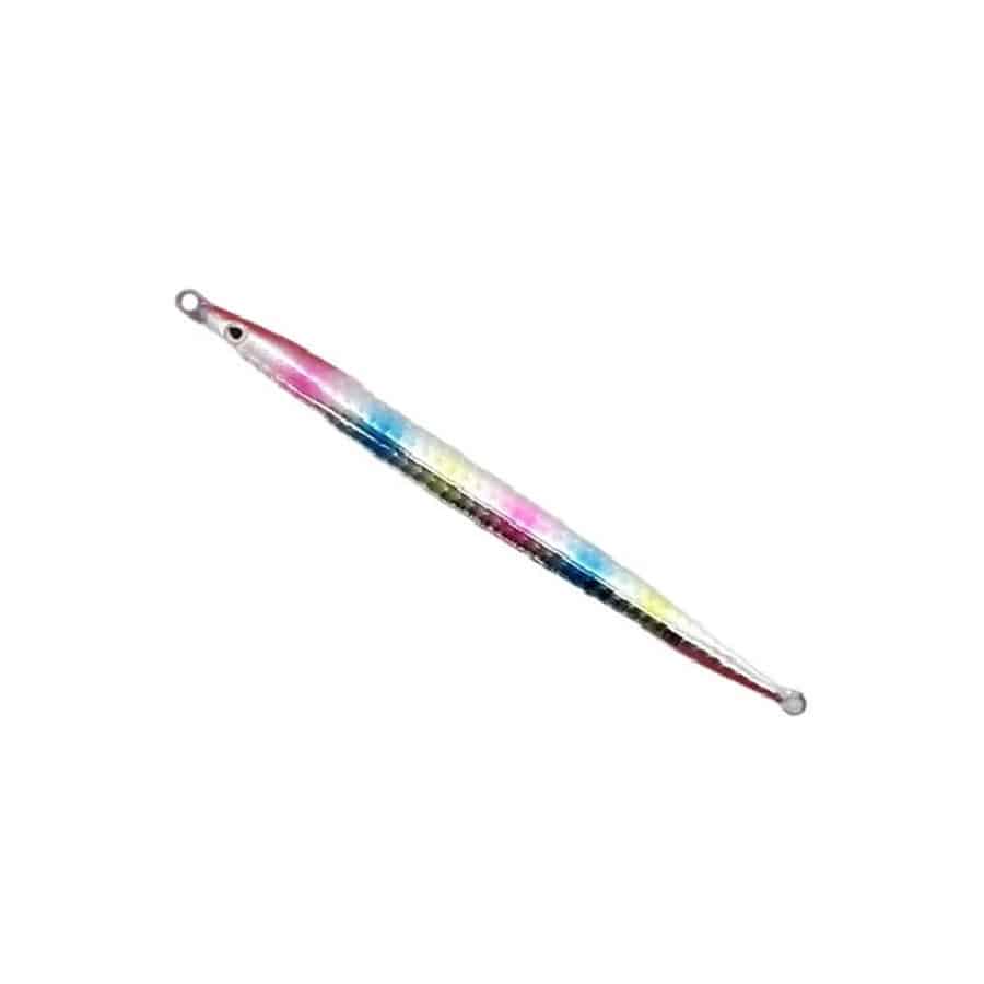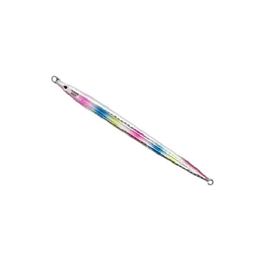 ただ頑強なだけじゃない。大型青物迎撃ロング。1,変型防止のステンレス鋼板「タフボーン」内蔵です。ワイヤーではありません。2,塗装は耐衝撃仕様です。磯にぶつかった箇所のみが凹むことを目指しています。3,「スライド」→「浮遊」→「水平フォール」の移行がスムーズです。通常のジグよりも大型青物に見切られることなくバイトを得やすくなっています。4,ジグのエッジに丸みを持たせ、フォール時のスライスを排除。フォールから着底までの迅速さはシリーズ最速です。150グラムなら激流帯ではプラス30グラムのフォール感覚です。5,飛距離へのこだわりは撃投シリーズ15年の蓄積。飛行姿勢(=飛距離)はロングジグでは類を見ない感覚です。