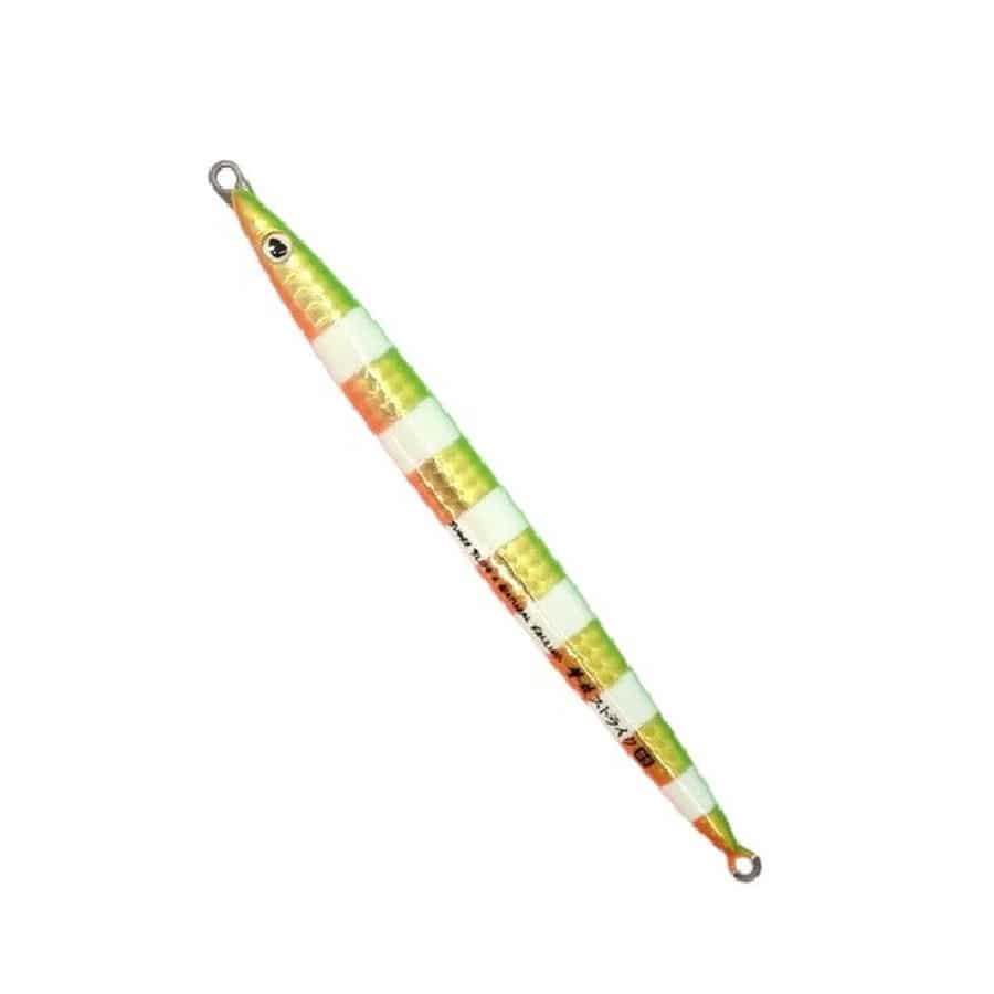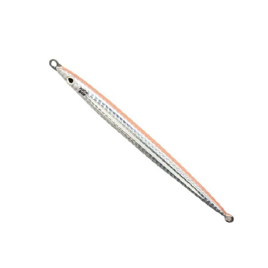 ただ頑強なだけじゃない。大型青物迎撃ロング。1,変型防止のステンレス鋼板「タフボーン」内蔵です。ワイヤーではありません。2,塗装は耐衝撃仕様です。磯にぶつかった箇所のみが凹むことを目指しています。3,「スライド」→「浮遊」→「水平フォール」の移行がスムーズです。通常のジグよりも大型青物に見切られることなくバイトを得やすくなっています。4,ジグのエッジに丸みを持たせ、フォール時のスライスを排除。フォールから着底までの迅速さはシリーズ最速です。150グラムなら激流帯ではプラス30グラムのフォール感覚です。5,飛距離へのこだわりは撃投シリーズ15年の蓄積。飛行姿勢(=飛距離)はロングジグでは類を見ない感覚です。