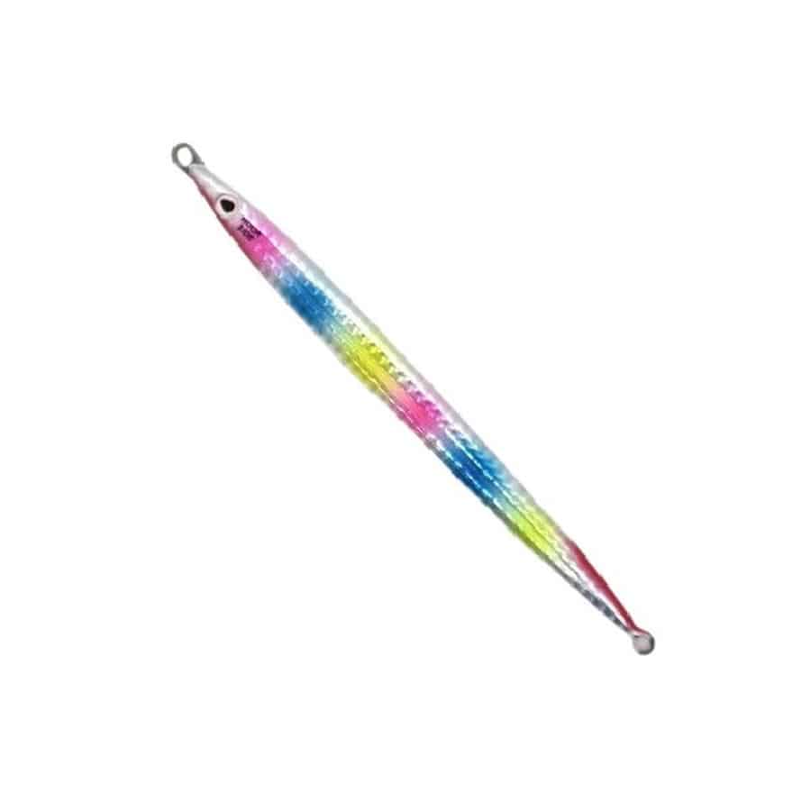 ただ頑強なだけじゃない。大型青物迎撃ロング。1,変型防止のステンレス鋼板「タフボーン」内蔵です。ワイヤーではありません。2,塗装は耐衝撃仕様です。磯にぶつかった箇所のみが凹むことを目指しています。3,「スライド」→「浮遊」→「水平フォール」の移行がスムーズです。通常のジグよりも大型青物に見切られることなくバイトを得やすくなっています。4,ジグのエッジに丸みを持たせ、フォール時のスライスを排除。フォールから着底までの迅速さはシリーズ最速です。150グラムなら激流帯ではプラス30グラムのフォール感覚です。5,飛距離へのこだわりは撃投シリーズ15年の蓄積。飛行姿勢(=飛距離)はロングジグでは類を見ない感覚です。