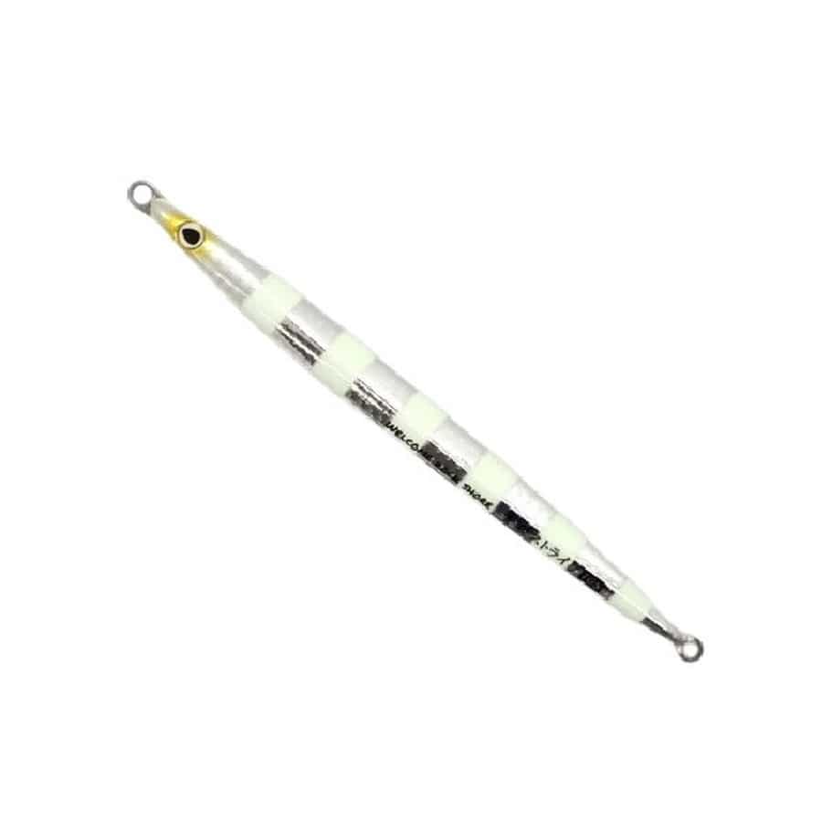 ただ頑強なだけじゃない。大型青物迎撃ロング。1,変型防止のステンレス鋼板「タフボーン」内蔵です。ワイヤーではありません。2,塗装は耐衝撃仕様です。磯にぶつかった箇所のみが凹むことを目指しています。3,「スライド」→「浮遊」→「水平フォール」の移行がスムーズです。通常のジグよりも大型青物に見切られることなくバイトを得やすくなっています。4,ジグのエッジに丸みを持たせ、フォール時のスライスを排除。フォールから着底までの迅速さはシリーズ最速です。150グラムなら激流帯ではプラス30グラムのフォール感覚です。5,飛距離へのこだわりは撃投シリーズ15年の蓄積。飛行姿勢(=飛距離)はロングジグでは類を見ない感覚です。