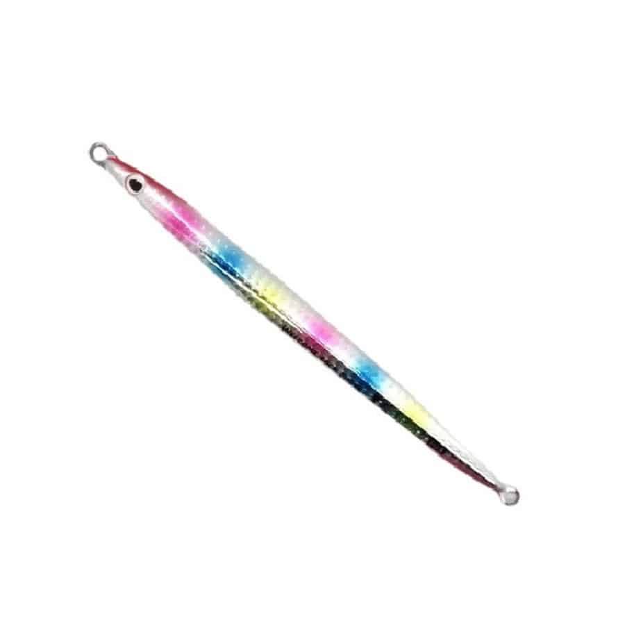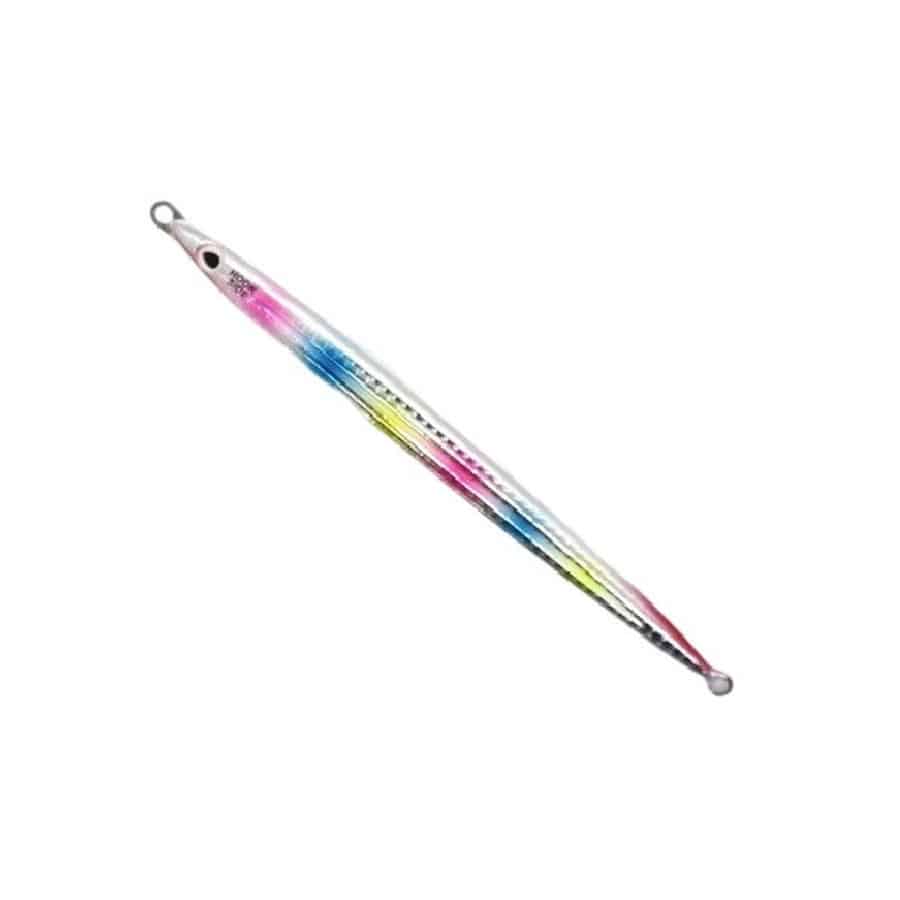 ただ頑強なだけじゃない。大型青物迎撃ロング。1,変型防止のステンレス鋼板「タフボーン」内蔵です。ワイヤーではありません。2,塗装は耐衝撃仕様です。磯にぶつかった箇所のみが凹むことを目指しています。3,「スライド」→「浮遊」→「水平フォール」の移行がスムーズです。通常のジグよりも大型青物に見切られることなくバイトを得やすくなっています。4,ジグのエッジに丸みを持たせ、フォール時のスライスを排除。フォールから着底までの迅速さはシリーズ最速です。150グラムなら激流帯ではプラス30グラムのフォール感覚です。5,飛距離へのこだわりは撃投シリーズ15年の蓄積。飛行姿勢(=飛距離)はロングジグでは類を見ない感覚です。