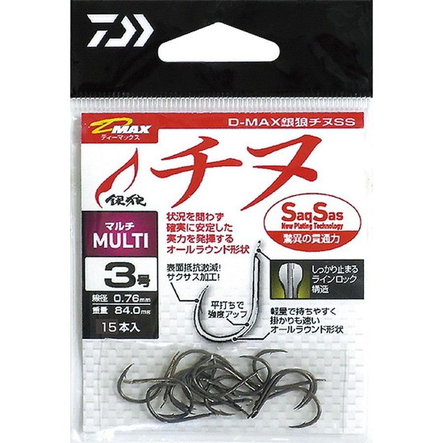 チヌ専用の高強度フック。大型チヌでもハリ先が飛ばない頑丈さが特徴 チヌの硬いアゴを貫通するSaqSas(サクサス)仕様。たたき部に溝を付けることにより針結び時に糸がずれにくいラインロック構造。ハリの軸を平たく潰すことで縦方向の力が強くなる平打ち加工。チヌの強烈な引きに耐える高強度設計。状況を選ばず安定した実力を発揮するオールラウンド形状の「マルチ」タイプ。ハリ先はやや内向きでバレにくいネムリ先。 ※掲載している商品の画像は代表画像を表示しています。また実物と色が違って見える場合があります。あらかじめご了承下さい。