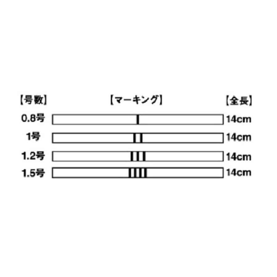 ハリス長(cm):14 入数(本):60 マーキング:3本線★張りのあるフロロカーボン100%の鮎専用ストレートハリス■視認性の高いイエロー・ブルーに加え、水中にとけ込んで鮎に警戒心を抱かせにくいブラウンをラインナップ。■シャキッと張りのあるフロロカーボン100%で根掛かりを軽減し、感度にも優れる。■号数がわかりやすいマーカー付き。※より安全にご使用いただくために、針巻き後は必ず接着剤をおつけください。※中心部のマーキングパーターンで号数の確認ができます。