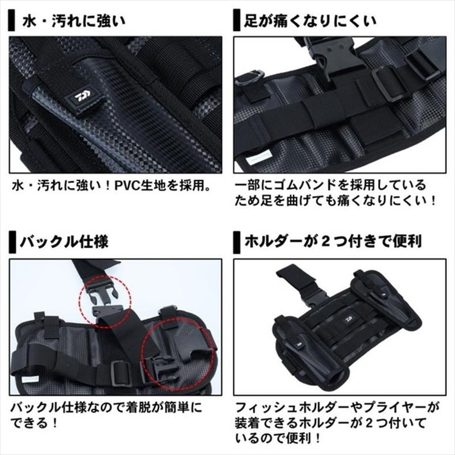 ★機動力を手に入れろ!足に様ざまな物を取り付けられる新感覚ホルスター! ●肩にかけると感度が鈍る、これからは足に! 太ももで固定出来る、機動力重視のホルスター●別売り商品、ポーチやロッドホルスターなど様ざまな物が自由に取り付けられる!●男心をくすぐるカーボン調デザイン