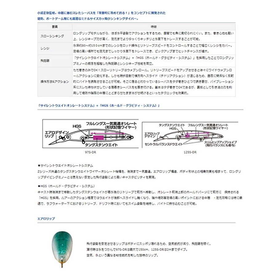 小沼正弥完全監修。テッパンだけでは芸が無い、誰もが苦手にしている堤防、磯等における中層と足元を攻められるぶっ飛びサーチシンキングダイバー 「僕が知ってるミノーのなかで一番飛ぶ」と小沼正弥に言わしめた「ショアラインシャイナーZ 125SDR」が新生。キャスタビリティ・レンジキープ性能を追求したスローシンキング設定ながら、多用するスロー~ミディアムでのレスポンスを徹底追求。小沼の卓越した経験とフィールドテストを繰り返した末にたどり着いた、こだわりの「釣れるハイピッチタイトウォブンロールアクション」が持ち味。「タダ巻きのスローリトリーブ」でもしっかりした引き心地と強烈なフラッシング&波動を発生。また、流れの変化で自動的に生まれるイレギュラースライドアクションが食わせの間を与え、特別なロッドアクションの入力は不要。低活性でシビアなシーバスのキスバイト(口先でつつくようなバイト)にも対応するこだわりの#6サイズ×3本フックシステム採用。