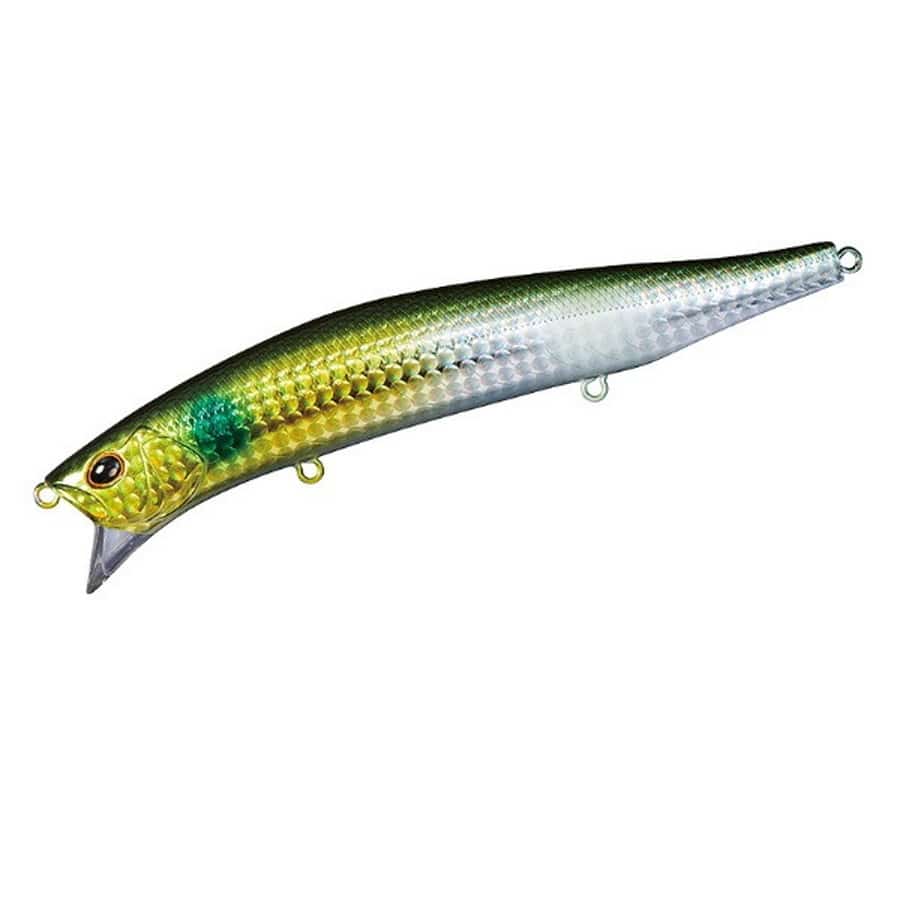 イナッコを完コピした水面引き波系ウェイクベイト。F-SSRは、ロッドポジションとリトリーブスピードとのコンビネーションにより水面~最大深度約30cm(140F-SSRは約50cm)のレンジをトレース可能。リトリーブはドリフト~ミディアムがおすすめ。特に超デッドスローにおける引き波の出方は、まさに弱ったボラそのもの。