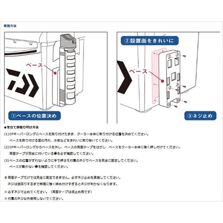 クーラー専用着脱式ロッドキーパー ■クーラーボックスに後付けできるロッドキーパー ■着脱可能なので不使用時は余計なスペースをとらない ■長さは5段階(全長:約300mm~420mm)で調整可能 ■直径33mmまでの竿、玉の柄に対応 ■専用ネジ、両面テープつきで取り付け簡単 ※掲載している商品の画像は代表画像を表示しています。また実物と色が違って見える場合があります。あらかじめご了承下さい。