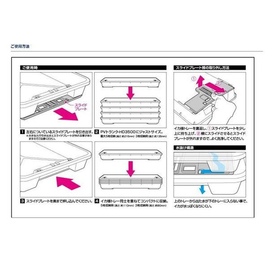 素材:樹脂部/ポリカーボネート 素材:金属部/(プレート付きアイテムのみ)/アルミニウム サイズ:485×240×50.5mm 3枚セット★樹脂素材採用でトレーが一度冷えたら温まりにくく、イカを鮮度を保ち、キレイに持ち帰り!※掲載している商品の画像は代表画像を表示しています。また実物と色が違って見える場合があります。あらかじめご了承下さい。