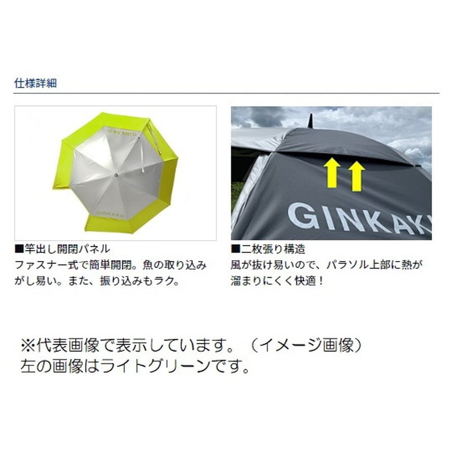 快適な釣りを提供するパラソル。傘直径約160cm(親骨:約90cm)で、日光と雨から体と荷物を守る。竿出し開閉パネル採用のため、振り込みや取り込みがスムーズ。二枚張りによるベンチレーション構造で、内側に風が抜け易く、熱を溜めにくい。遮光率・UVカット率99%以上。