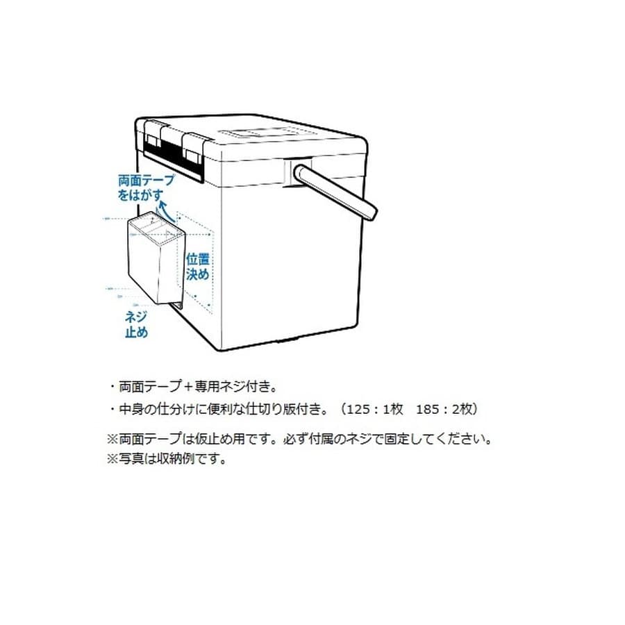 サイズ:185×135mm★クーラー本体に取り付けて便利にカスタマイズできる付属パーツ、CP(クーラーパートナー)シリーズ ■CPポケット 125/185:小物類の収納に便利なマルチポケット●両面テーププラス専用ネジ付き。●中身の仕分けに便利な仕切り版付き。(125:1枚 185:2枚)※両面テープは仮止め用です。必ず付属のネジで固定してください。※写真は収納例です。