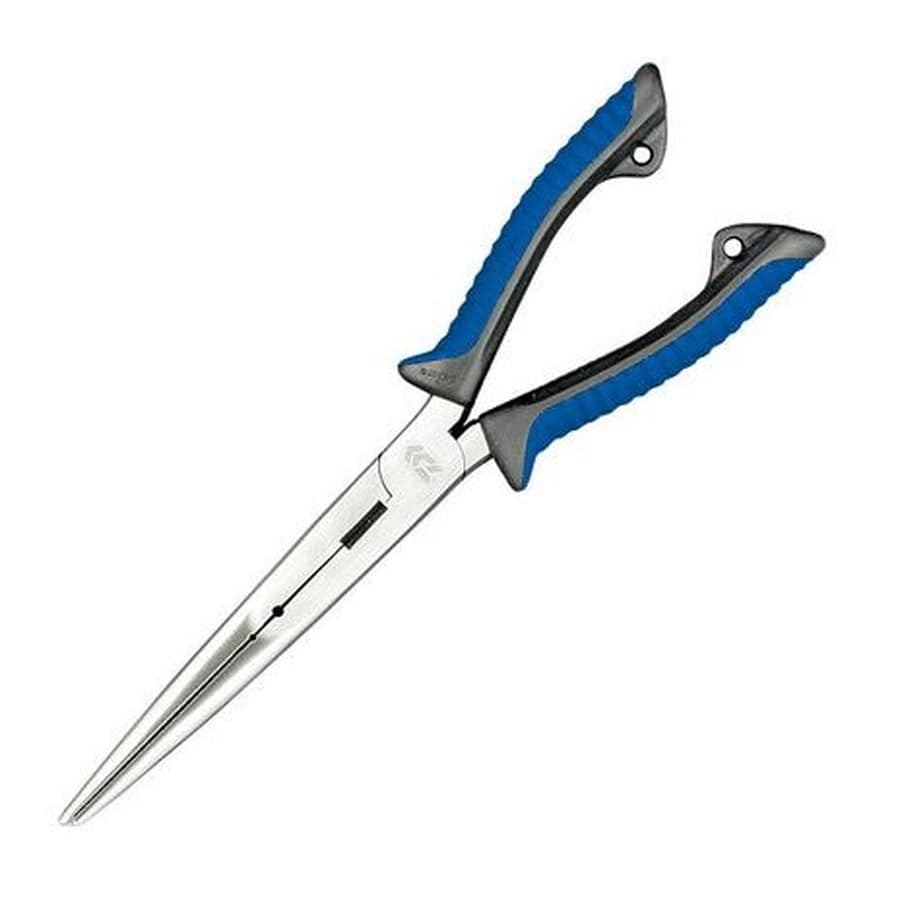 耐久性に優れたヘビーデューティ肉厚ステンレス製プライヤー 耐久性に優れたステンレスボディで淡水 海水を問わず使用可能 手にやさしいソフトタッチグリップ(ロープ取付け穴付き) 魚の口つかみ、スプリットリング外しに使用できる先端部 ハリ外し、ガン玉つぶしにもピッタリ ナイロン フロロカーボンライン用ラインカッター付き ロングノーズで大型フックを外す際に扱いやすく、曲がったフックの簡易矯正用スリット付き(220H)