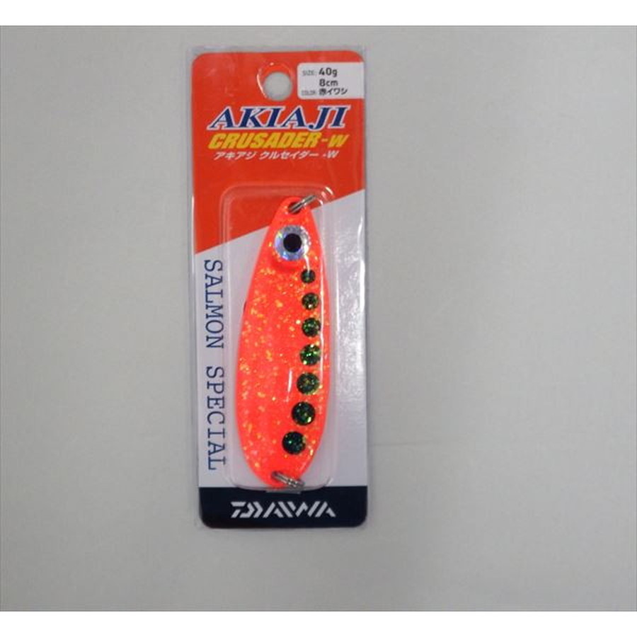 アキアジ用ルアーとして定番となったアキアジクルセイダーWは豊富なカラーバリエーションが特徴、さらに重量の使い分けでほとんどあらゆる釣り場の状況に対応できる。重量は35g・40g・45gで、サケの回遊層に合わせて浅い時には35g、深い場合は45gと使い分ける。 初期から後期まで安定して人気があるのは赤系、ピンク系、後期に釣果の上がるダークカラー系、オホーツク海岸で特に人気があるブルー系、太平洋の定番は赤ドットなど時期や釣り場で使い分けるのが重要なポイント!※掲載している商品の画像は代表画像を表示しています。また実物と色が違って見える場合があります。あらかじめご了承下さい。