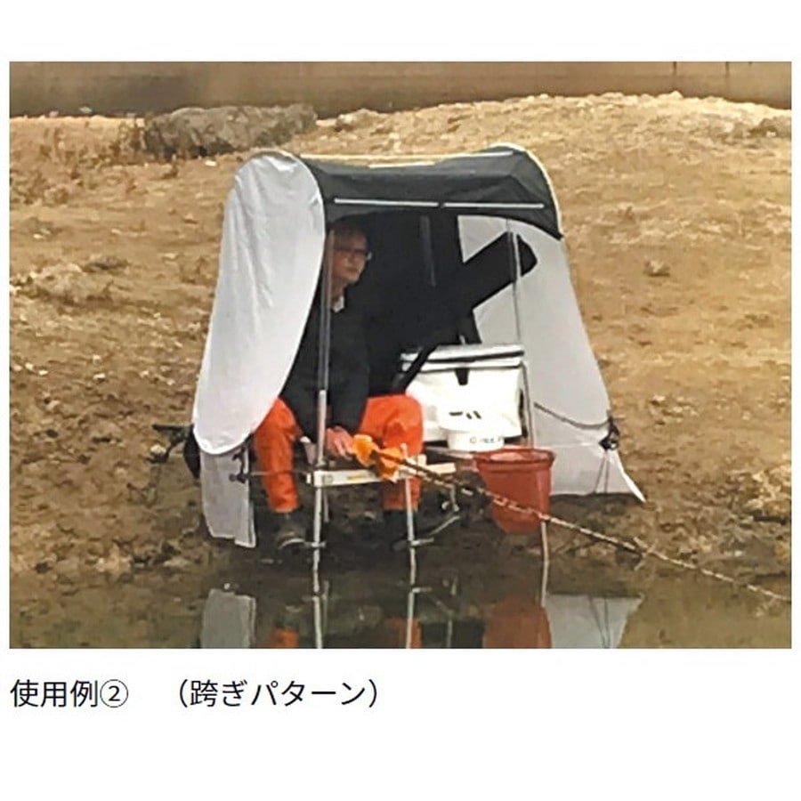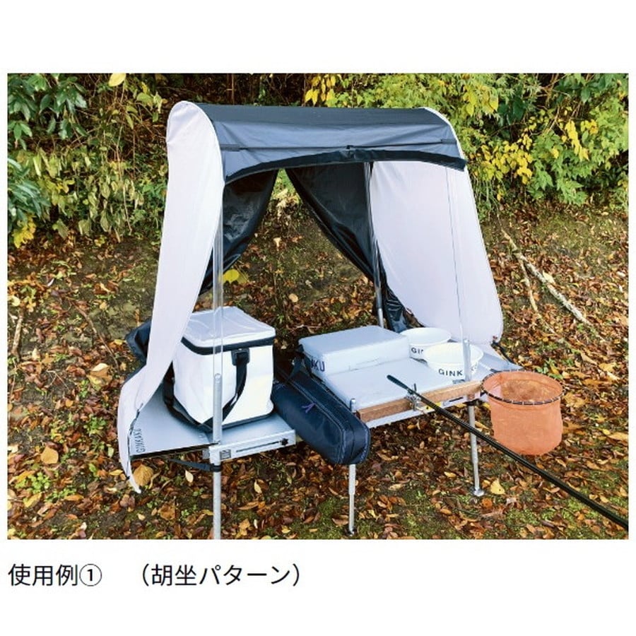 GINKAKU釣台用テント!GINKAKUへら台にセットできるテント。通常のへらテントは底面があり、へら台にセットすることが困難なため、雨天時にはパラソルを使用することが多い。しかし、横から雨が防げず濡れることがあり、雨対策としては不十分であった。このテントは、へら台の足に付属のパイプを差し込み、テント本体を被せてセットすれば、横からの雨の差し込みを防ぐので、快適な釣りが可能になる。※GINKAKUテント 使用上の注意点 ■風の強い時はご使用を控えてください。■使用中にへら台から離れる際には、必ずテントを折りたたんでください。(急な風で倒れたり、飛ばされることがあります)★収納時サイズ:約50cm 重量:約2.2kg