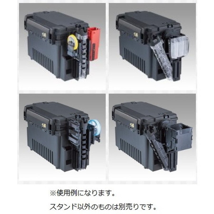 バケットマウスシリーズ、ランガンシステムボックス専用、傾斜スライド式のロッドスタンド。従来のスタンドとは異なり、直立姿勢の『スタンダードスタイル』、スタンドがお辞儀するように倒れる『スライドスタイル』、スタンド本体の装着面は背面でも側面でも可能な『フリースタイル』と自由度の高い仕様となっています。スライドスタイルでは、仕掛けの交換やノットの組み換えが格段にしやすく、ティップにラインが絡みつくトラブルを軽減します。さらに、スタンド本体の両サイドには、各種オプションパーツが装着できる多目的ホルダーを搭載しているのでカスタムも自由度の高いカスタムが可能。従来品に保護キャップを加えさらに使いやすくなりました。スタンド穴径は35mmに設定、スマートボディであらゆるシーンにフィットします。★外寸(縦×横×高さ):74×63×273mm