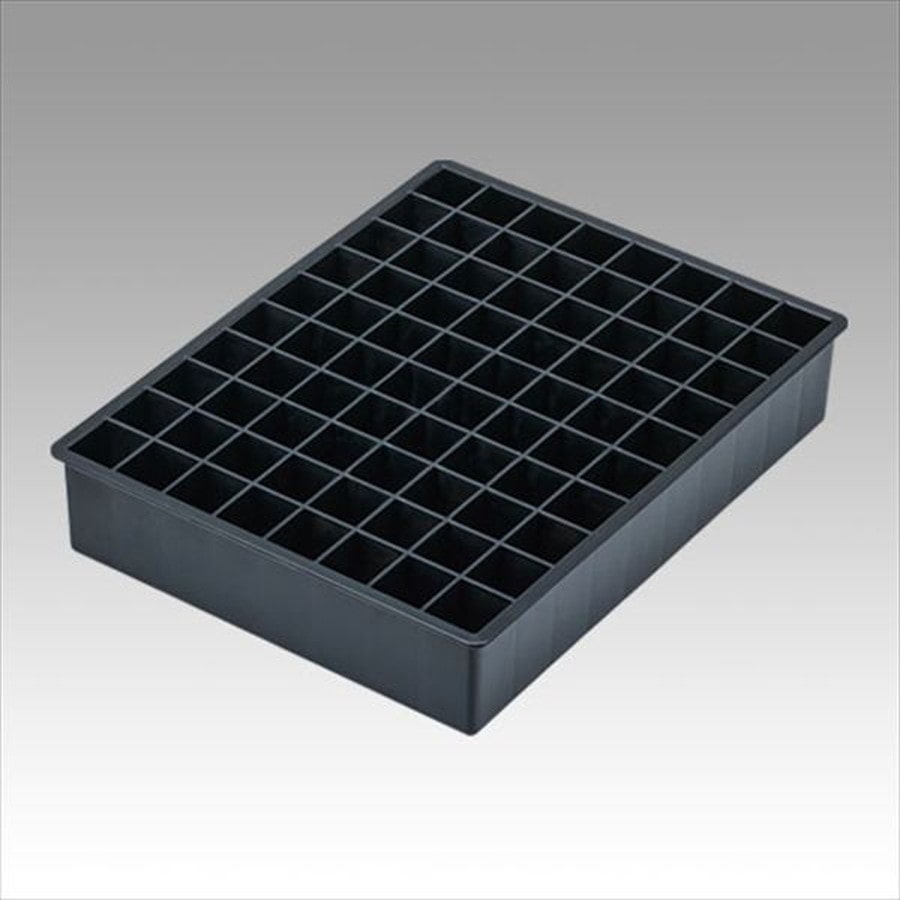 最大80個のプラグが収納できるプラグ収納パーツ。トランスフォームA、VS-7090NAのトレイにジャストフィットするサイズ設計で、それぞれに2個システム収納可能。プラグは各マスから出ている状態なので、取り出しやすく何がどこにあるのか一目瞭然。トランスフォームAにセットする場合でも、プラグハウスとトランスフォームAの天面とは十分なスペースがあるので、高さ77mmクラスのプラグも収納可能です。(※メーカーによっては対応しない場合があります。)